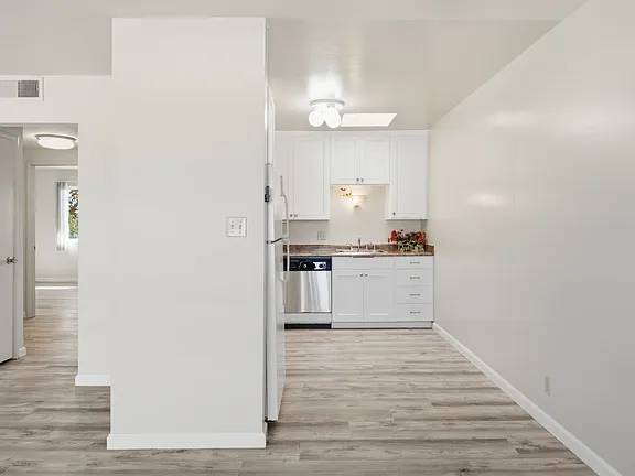 The kitchen includes good cabinet space and modern countertops, great for everyday cooking. Bedrooms are comfortable in size with roomy closets. The bathroom features updated fixtures and a clean, simple design.