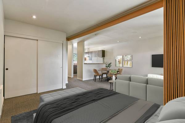Available for rent is a spacious junior 1 bedroom apartment with hardwood style vinyl floors throughout, granite kitchen countertops, and a fully remodeled bathroom. Living room has a divider to separate the sleeping area from the living room. Enjoy recessed lighting with dimmers. Energy efficient dual paned windows and wall heater help keep the apartment comfortable.