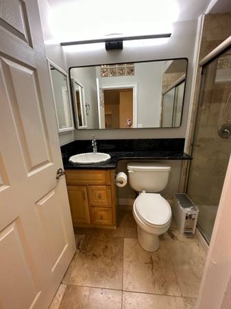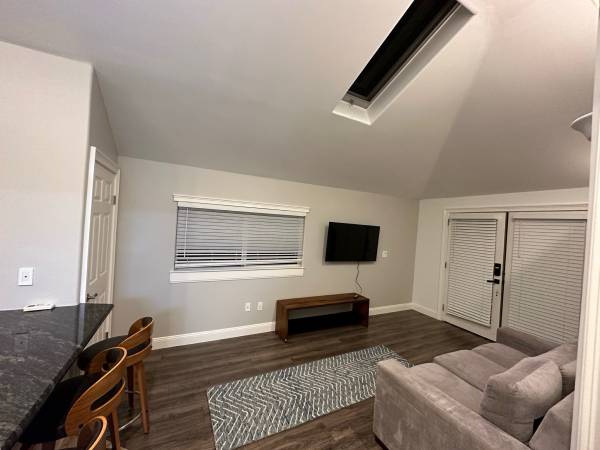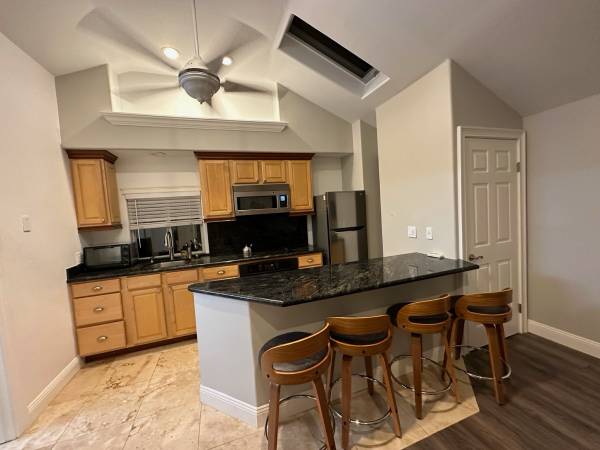 Furnished guesthouse with modern furniture, 2 flat screen TVs, washer dryer, stove, oven, sink, refrigerator and off street parking. Private entrance.