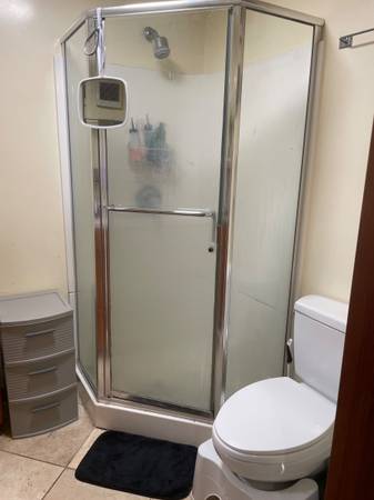 Separate entrance, not a shared or roommate situation. Owners live upstairs in a single family home. Shoji screens on window, custom built in dresser, desk, shelving and closet doors, and wooden bed frame with double mattress. Bathroom has sink, toilet, shower, custom cabinets and countertop.No backyard access. Laundry one block away. First, last and one month security deposit.One year lease, then goes to month to month. No pets. One room only plus private bathroom.