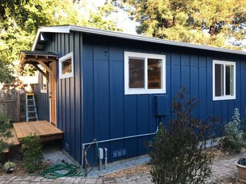 Nestled under a grove of redwood trees this tiny home offers a retreat from the hustle and bustle of city life.