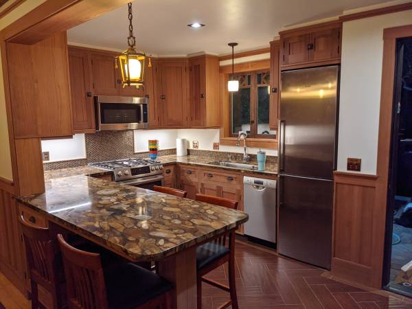 Has a full top-of-the-line eat-in kitchen with granite counters, dual-fuel range, convection microwave, dishwasher, Refrigerator/Freezer