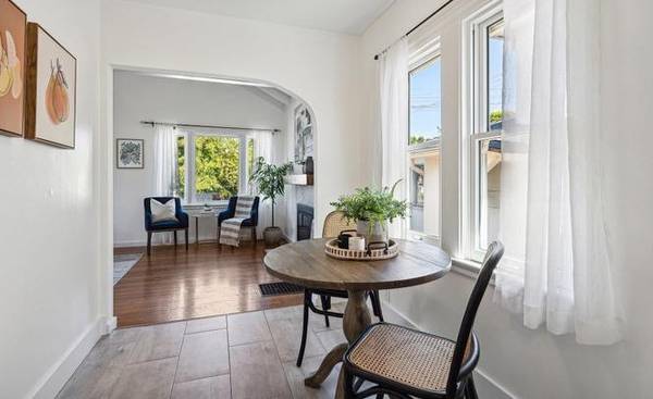 This cozy residence seamlessly blends original charm and modern updates. With hardwood floors, vaulted beam ceilings, and updated heating and electrical systems, this home offers comfort and character. Step into your own private oasis with an expansive backyard, perfect for gardening and relaxation.The main house, spanning approximately 571 square feet per public records, feels spacious and well laid out. A downstairs flex room, along with additional bonus spaces and the laundry room are not included in the square footage, they provide versatility for various uses. Don't miss this unique opportunity to live in this charming Berkeley home. Walk or roll to N. Berkeley BART, Acme Bread, Cedar-Rose Park, Elementary & Middle school, and Whole Foods.