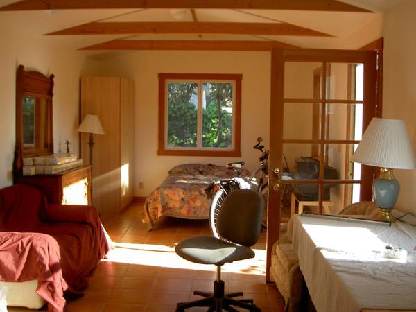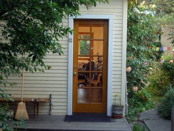 Backyard garden studio (450 sq. ft.) in Northwest Berkeley’s Gilman District. Sunny, airy, light, quiet, with kitchenette, bathroom, and private entrance. On quiet Berkeley Street, easy parking, near 4th street, Monterey Market, Whole Foods, BART and bus lines. Looking for quiet tenant. One person only. Pets negotiable.