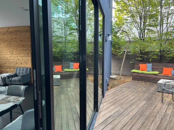 Indoor outdoor flow to low-maintenance backyard