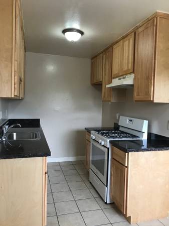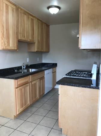 Remodeled galley kitchen with newer cabinets & granite counters