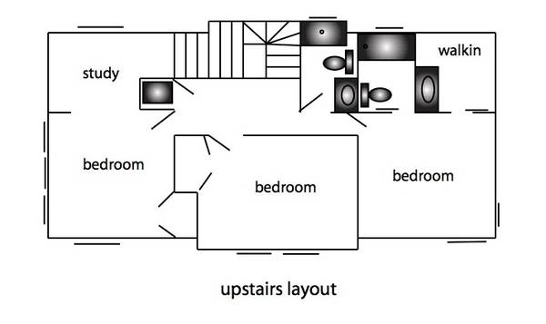 Please see enclosed photos for layout of both downstairs and upstairs: