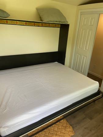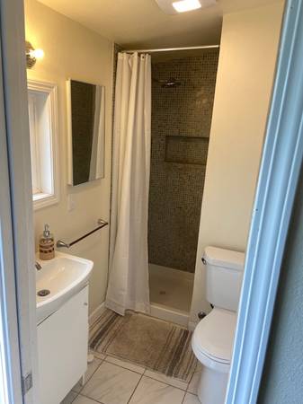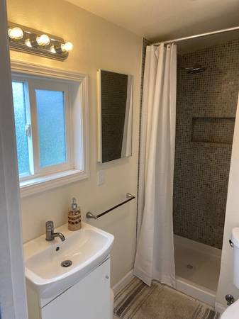 The cottage is located in the back yard of the main house. We are a community but respect each other's space. The yard is shared with the tenants in the main house. Laundry room is available at no extra charge. All bills included. High-speed Internet hardwired directly to the Cottage. Kitchen comes with three-quarter size fridge, microwave, hot plate, toaster oven, and full-size sink. Bathroom comes with vanity, and extractor fan. The cottage comes with a desk, chair, and fold down Murphy bed (brand new mattress). The Murphy bed is a good space saver!