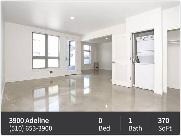 Property Description: Our pet friendly community boasts several unique floor plans ranging from studios to three bedroom homes, including lofts, townhomes and live-work spaces. Our modern interiors provide in-home washer and dryer combos, polished concrete flooring and stainless steel appliances, including a gas range! Select homes offer private patios, street access entry, downtown Oakland views and fifty foot vaulted ceilings with spiral staircases. In addition to all of the above benefits to choosing 3900 Adeline as your new home, our controlled access community offers a media room, game room, clubhouse, interior courtyard and picnic areas, bike storage, elevators and LuxerOne Package Lockers! True to the quality and standard of a Madison Park community, we seek to provide our valued residents with the ultimate living experience. Don't hesitate, let us help you make 3900 Adeline your new home!