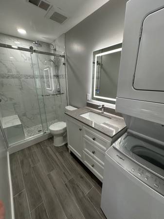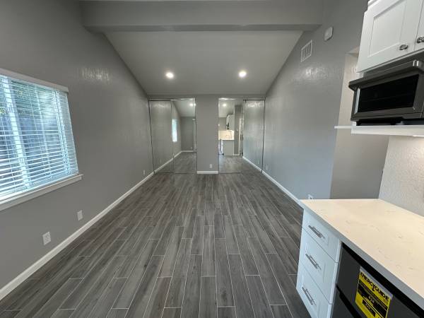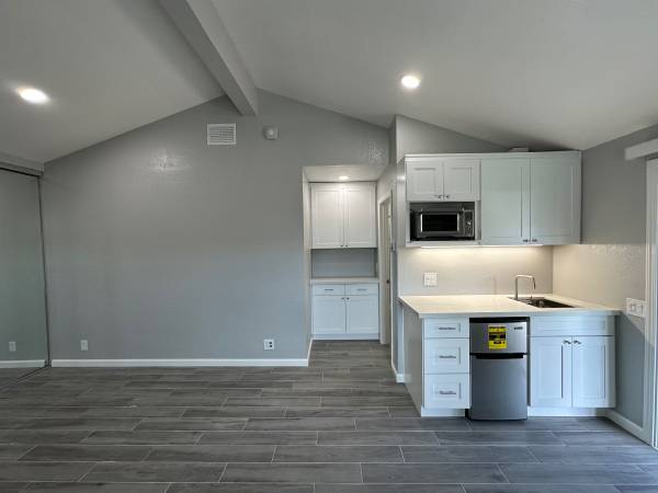 Large NEWLY renovated commuter friendly studio and 1 bathroom ADU with kitchenette. Includes new appliances, toaster oven, hot plate, refrigerator / freezer and in unit washer and dryer. Lots of counter, closet and storage space. Heated floors.