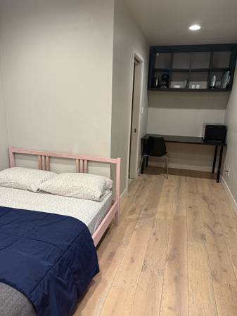 Spacious, bright and newly remodeled bedroom with separated entry and private bathroom. The unit is attached to the main house. Private entrance is from the side yard. Free Utilities including WiFi.