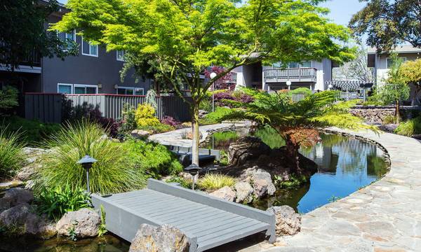 Each 1, 2 & 3 apartment features private balcony and a spacious kitchen for cooking and entertaining. At the heart of the community sits a lagoon, stocked with koi fish and turtles, creating a peaceful space where you can relax as you stroll along its edges. With a community fitness center and dry sauna on-site, residents can work up a sweat and relax poolside for the afternoon, enjoying the lovely landscape. Laundry facilities are available to all residents as well.