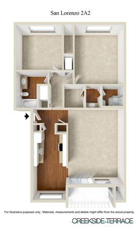 You will find everything you need at Creekside Terrace. You’ll find 1, 2 & 3 bedrooms apartment homes that offer modern appliances and plenty of storage, pantry, and closet space. Our 52 apartment unit community offers many amenities for you to take advantage of including our sparkling swimming pool and fitness center complete with men’s and women’s sauna. Feel like staying in? Unwind after a long day by sitting on your private patio shaded by one of our property’s many towering redwood trees.