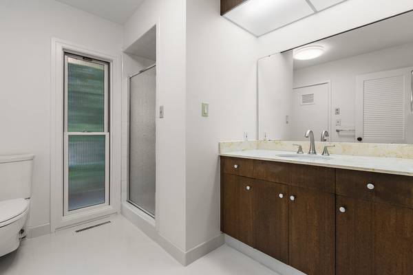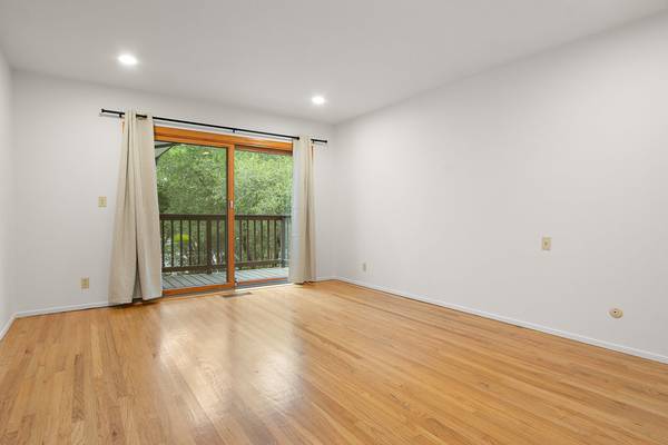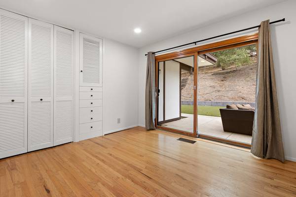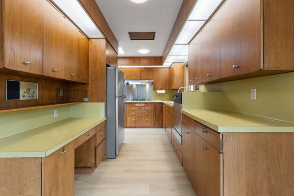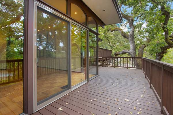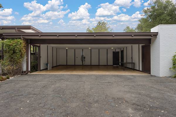 • Mid-century modern design with atrium, large windows, wrap-around deck