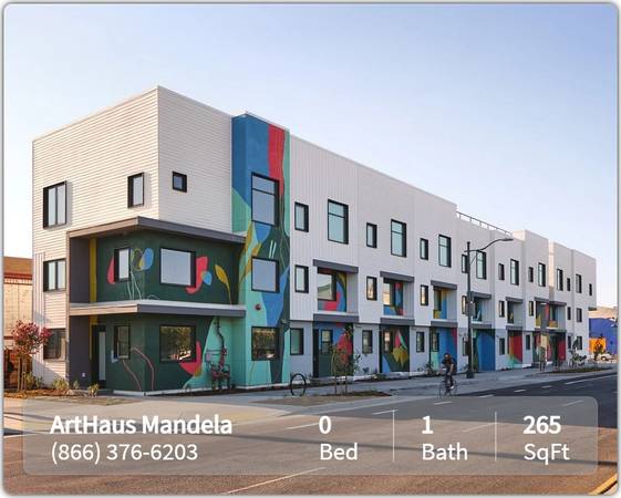 About the community: ArtHaus Mandela is a modern, design forward community rooted in a growing neighborhood of West Oakland. Taste the city in newly opened taprooms and the West Oakland Farmers Market and Prescott Night Market, then work up a sweat in the country's largest indoor climbing gym. Hop on the bike path right outside, or take a quick walk to coffee shops and restaurants nearby. You're just 5 minutes from BART for easy access to everywhere in the bay. These fully furnished studio apartments make move in a breeze- you're home from the moment you walk in the door.