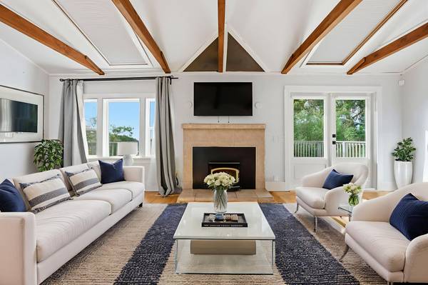 Enjoy beautiful hardwood floors, new carpet, and fresh interior paint throughout. The large living room showcases exposed wooden beams and a cozy fireplace, creating a warm and inviting atmosphere. The updated kitchen comes equipped with stainless steel appliances and flows seamlessly into the dining area, which opens to an expansive deck with stunning views ideal for relaxing or entertaining.