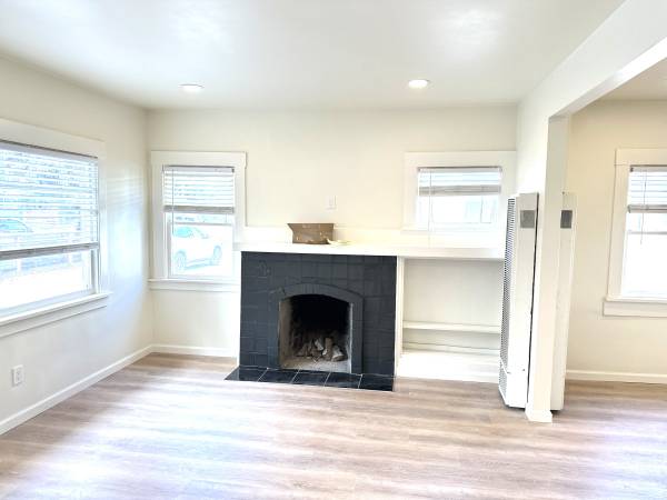 This home, aptly named "5 Bed/2 Full Baths W/Washer&Dryer Hook Ups!", offers a spacious layout that is both functional and aesthetically pleasing. The living room, with its cozy fireplace, provides a warm and inviting space for relaxation and entertainment. The home also boasts ample street parking and space for up to 3 vehicles right in front of the property, adding to its convenience.