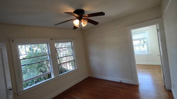 *** Hardwood floors, and multiple glass panes in every room add lots of natural light, house nestled in a quiet tree shaded backyard garden. Floor plan includes kitchen with breakfast nook, living room, dining room, plus sizable bonus room off a rear bedroom that can make great office / artist work or storage space.