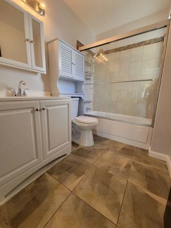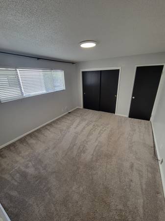 -Laminate Floor Throughout (bedroom New Carpet) and bathroom floor (tile)