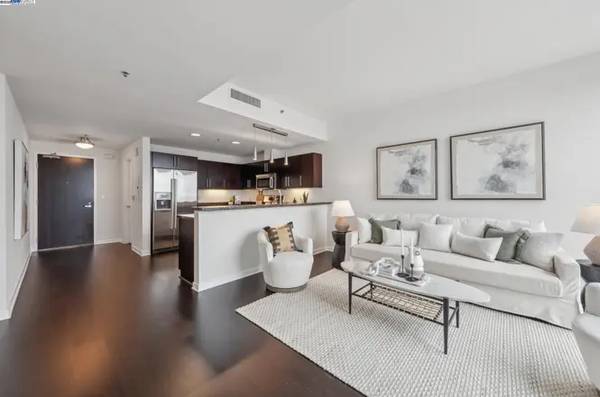 Large one-bedroom, one-bath condominium is immersed in views of the Bay, Golden Gate, and San Rafael bridges through spectacular floor-to-ceiling windows and a balcony that beckons a very Happy Hour bathed in sunset views of sailboats and Saturday night. Moody tones give this home an air of timeless sophistication with a punch of sassy urban culture. The kitchen marries rich mahogany color cabinets with a refined tile backsplash add a powerful air of elegance. The bedroom is extraordinary. Dramatic and enormous. Sleep among the sparkling city lights. Watch the ferries come in and the sailboats gracefully glide about, all within the comfort of your sheltered private balcony. A walk-in closet with detailed closet organizers offers great space and amazing storage. Crazy great value! The Ellington is a modern full-service high-rise with 24/7 concierge, a beautiful pool deck with heated pool, spa, showers, and BBQ. It also has an impressive fitness center, and a terrific community lounge, with full kitchen, tables, soft seating, and DirecTV™. This is luxury urban living at its finest. Walking distance to incredible restaurants, wineries, breweries, music venues, art galleries, and more. Enjoy kayaking, paddle boards, boating, and the beautiful Bay Trail.