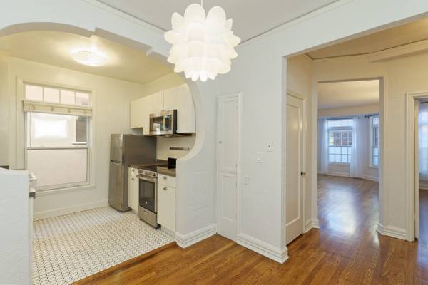 This spacious one-bedroom ground floor apartment has beautiful hardwood floors, new double-hung dual-pane windows, high ceilings, three closets including a walk-through, great features, and an abundance of charm. Plenty of storage in a charming and gorgeous space.