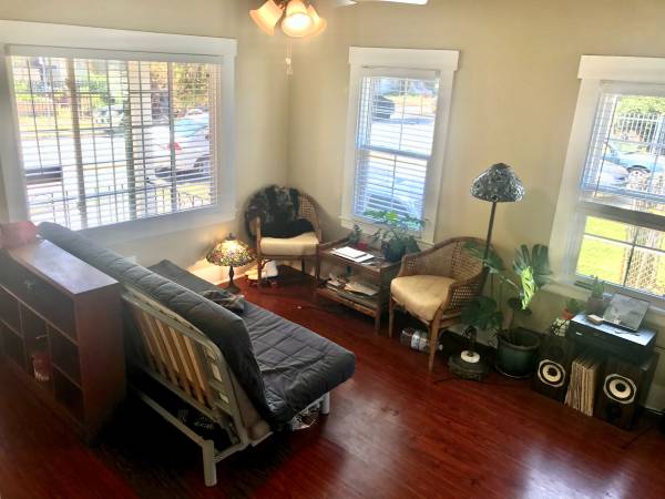 Cosy 2 bedroom UNFURNISHED home with self contained studio unit in the back. Home has lots of windows and very nice light. 700 sq ft, 1.5 bath, comfortable kitchen, washer/dryer room, large redwood back deck, nice front yard and large backyard. Studio unit is 260 sq ft with full kitchen and bathroom. Property also includes secure storage shed, space to park 3 cars in the driveway. Quiet cul-de-sac street and good neighbors. Minutes to 880 freeway, walking distance to coliseum BART, 10 min from Oakland airport. This is a wonderful cosy home.