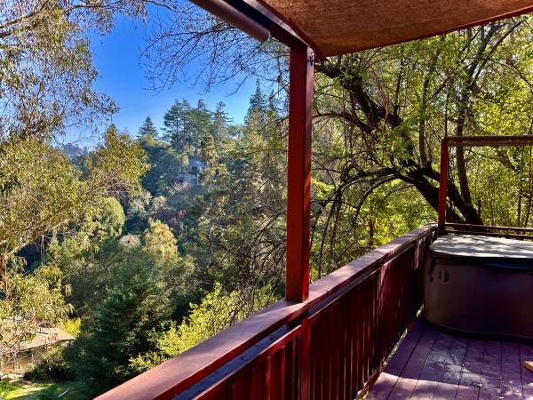 - ZEN OASIS! Absolutely stunning high end, fully furnished studio in-law unit. This gorgeous property is hidden in the woodsy Montclair Hills. Redwood trees surround the property and beams of light shine through the windows to give it a magical aura. A private entrance, accessed by a private deck, overlooks a private valley where you can sit in a private hot tub! Parking and laundry. Utilities included! The unit was never meant to be a rental so no expense was spared. The pictures don't lie.
