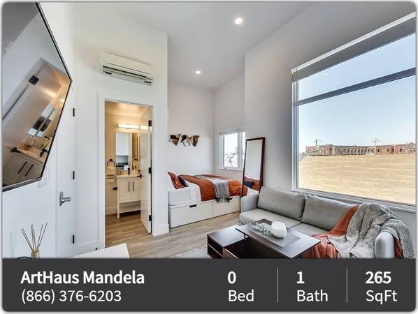 ArtHaus Mandela is a modern, design forward community rooted in a growing neighborhood of West Oakland. Taste the city in newly opened taprooms and the West Oakland Farmers Market and Prescott Night Market, then work up a sweat in the country's largest indoor climbing gym. Hop on the bike path right outside, or take a quick walk to coffee shops and restaurants nearby. You're just 5 minutes from BART for easy access to everywhere in the bay. These fully furnished studio apartments make move in a breeze you're home from the moment you walk in the door.