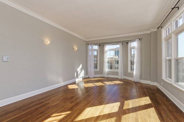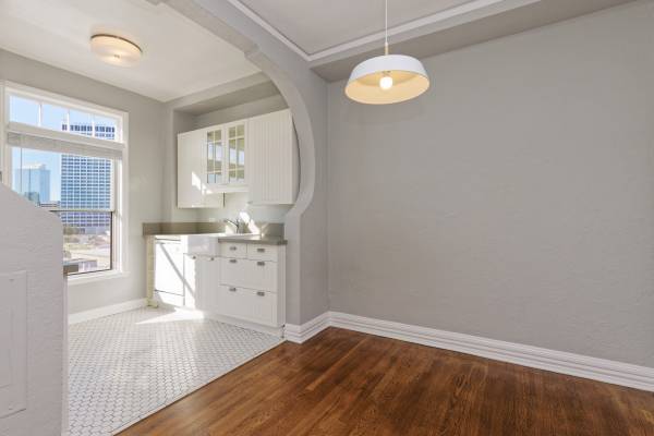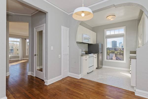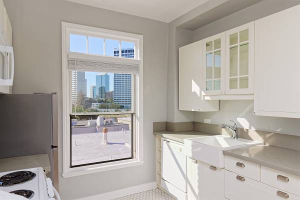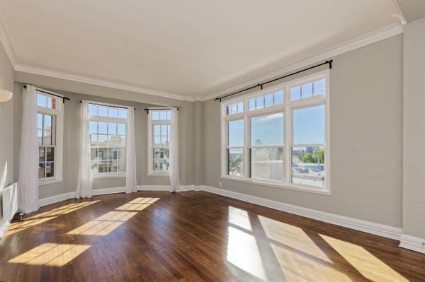 This large one-bedroom upper floor apartment has great lighting, views of Lake Merritt and downtown Oakland, beautiful hardwood floors, new double hung dual pane windows, four closets including and an updated kitchen with new appliances. Plenty of storage in a gorgeous space.