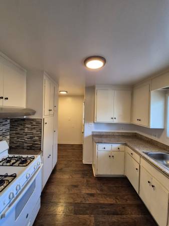*Large eat-in kitchen with granite counters, lots of cabinets, gas stove, refrigerator, and dishwasher.