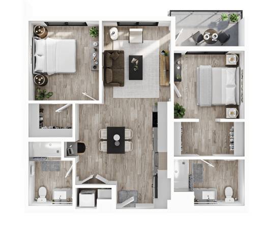Lease this two bedroom two bathroom apartment today! Quartz counters, wood plank-style flooring, wood shelving, front-loading washer and dryer in unit and more!
