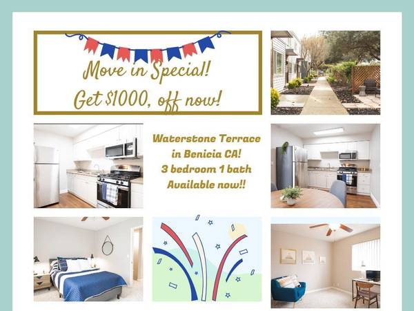 Waterstone Terrace Apartments has recently undergone an extensive exterior renovation for a brand new look and feel! This charming apartment community has been transformed into a newly updated community with more upgrades on the horizon. Although we have taken on a new exterior look, our location is just as amazing as ever; just blocks from the infamous Benicia Waterfront and a short walk to the vibrant downtown. Outdoor activities like fishing and boating, fine dining and shopping are effortless for our residents which makes Waterstone Terrace stand out from all the rest.