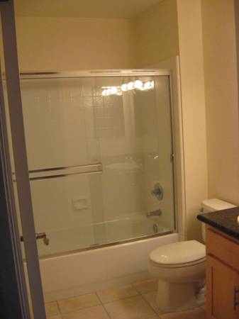 The bathroom is down a hallway from the living room. It has Italian marble imported to our designer’s demand with a white tub, long-nose elongated toilet, Italian floor tiles and a sink unit from Italy as well. No Home Depot specials here - only the best money can buy - within reason, of course. Directly adjacent to the bathroom are two good-sized bedrooms and one has a walk-in closet. These face the quiet common area and both have dual-pane windows effectively eliminating noise and retaining heat or cool.