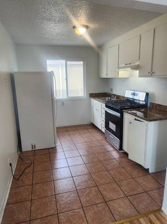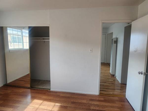 Top floor unit in the rear. One car open parking space included. Two bedrooms, one bathroom with full living room. Full kitchen w/gas stove. All new paint and vinyl/wood flooring. Cat or small dog ok with additional pet deposit. No laundry.