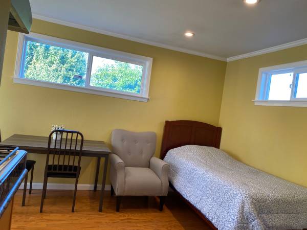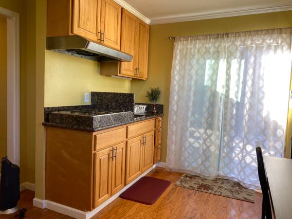 This is a very private in law apartment which overlooks the garden. The neighborhood is very quiet and well kept but this house and the garden is the jewel of the neighborhood. The large backyard has been meticulously maintained and is simply overflowing with gorgeous roses and other flowers plus many fruit trees all available for picking.