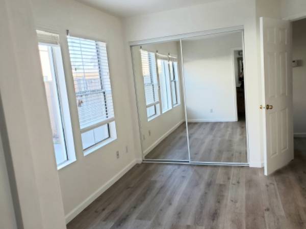 Remodeled 3 years ago, this single family home offers 3 bedrooms and 2 baths with a 2 car attached garage. It's a San Francisco style single family house with neighbors on both sides, separated by 8 inches of air space. There are no shared walls with your neighbors. The home includes luxury plank flooring throughout, and granite countertops in kitchen and bathrooms. The spacious second level has the kitchen, dining room, living room, two full sized bedrooms and a full bath. The first floor has a master suite with full bathroom, 2 closets and 2 car garage with a laundry area. The back patio is great for family barbecues. Safe and convenient location. 3 blocks to BART, near public transportation, and easy freeway access to 580 and 880. Close to Marina Square shopping plaza, walk to downtown restaurants, shops, banks and library.