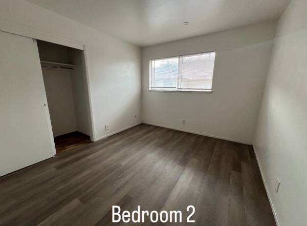 Brand new flooring (vinyl plank), new bathtub, new shower, fresh interior paint and new kitchen countertop. This is a spacious 2 story townhouse style unit. Located in a quiet neighborhood directly across the street from an Alameda County Sherriff Office and Ashland Park & Community Center. Extremely close access to 580 Freeway and 238/880 Freeways (3-5 minutes) for commuters and can reach BART in about 10 minutes.
