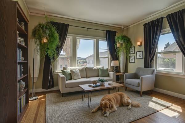 The complex is a fourplex on the front, and a duplex on the back of the property, with a beautiful, flower-filled patio/BBQ area. Since the units have offices, most of us are WFH with occasional trips to SF via the ferry for in-office days. It's a nice life! We have an English Bull Terrier, and Ambull Pit Mix, and a Stafford as residents, so please be dog friendly. They are all walked and well taken care of...we're lucky to have landlords who are ALL BREED FRIENDLY and want to keep it that way! If you have a dog, please be certain that your dog management skills are on point and that your dog will be OK with a flight of steep stairs.
