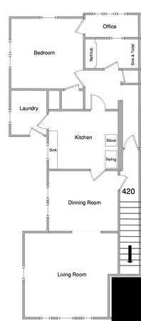 950 SqFt 1bd/1ba + home office (The office cannot be used as a bedroom. It really is just an office. Some people use theirs as an additional closet.)