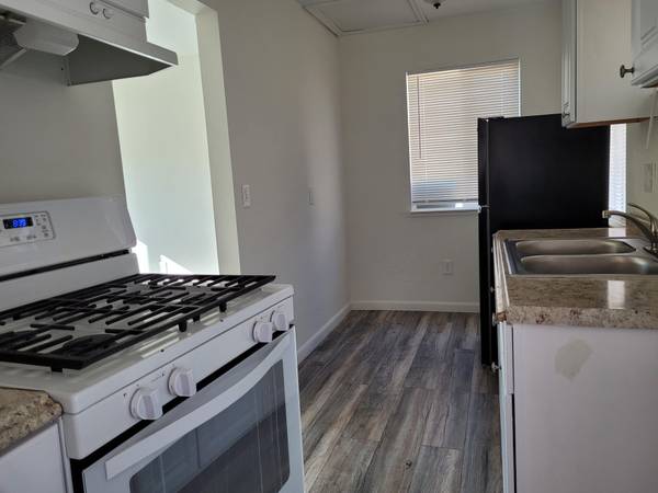 This nicely setup studio has 1 bathroom with standing shower at approximately 300square feet. This Studio apartment comes with a kitchen gas stove, refrigerator, wall furnace, and Pergo flooring, a covered shared carport. Plus, great location , no wall to wall with any other unit on a nice quiet, clean community!