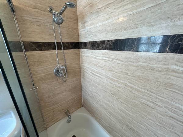 - Bath rooms: Travertine Tile Floors and Shower/Bath Surround, frame-less Glass shower doors, all new fixtures - New flooring throughout apartment