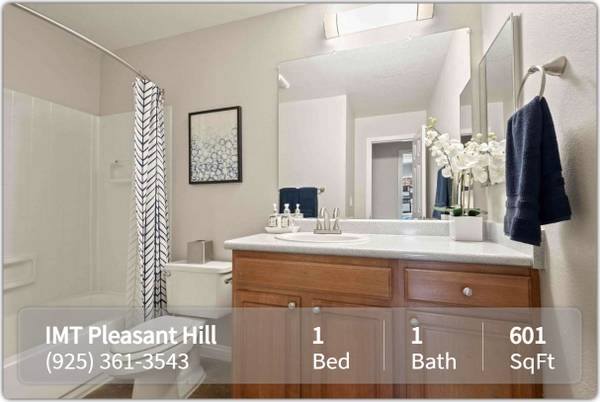 Welcome to IMT Pleasant Hill, the top selection in Pleasant Hill apartments. Our lovely apartment community is in a perfect location along the edge of the mountains and a quick drive from the bay. If you are looking for the best in apartment living look no further than IMT Pleasant Hill. At IMT Pleasant Hill we offer a variety of floor plans including studio, one and two bedroom apartment homes. Finding your way here could not be easier. We are just off Interstate 680 on Coggins Drive. When you arrive, you will be in a neighborhood sure to accommodate all your needs. We are near several employers as well as the BART station. If you are looking to unwind we are located near a wide variety of dining, entertainment and recreation options. We can't wait to help you begin the journey toward this fantastic apartment experience.