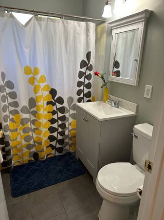 * 2 spacious bedrooms, 2 full baths upstairs, 1/2 bath downstairs, 1100 sq feet;