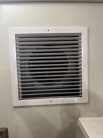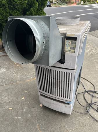 BONUS: if you want it, I can give you the plenums and my ductwork too, so you can set it up at your house the same way. It's 12" duct and then 14x14 plenum and grill for the inside, as well as a louver to put in for the exhaust air going outside. You can take it all and have a great little A/C for your home. Or, just take the unit and I can scrap the plenums/duct, either way.