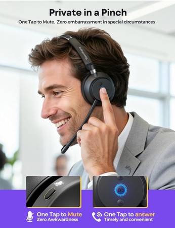 Wireless Headset with Mic for Work, Bluetooth 5.3 Headphones with Microphone, Headset with Microphone for PC, Wireless Headphones with Charging Base