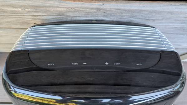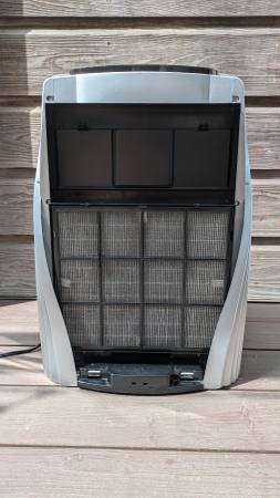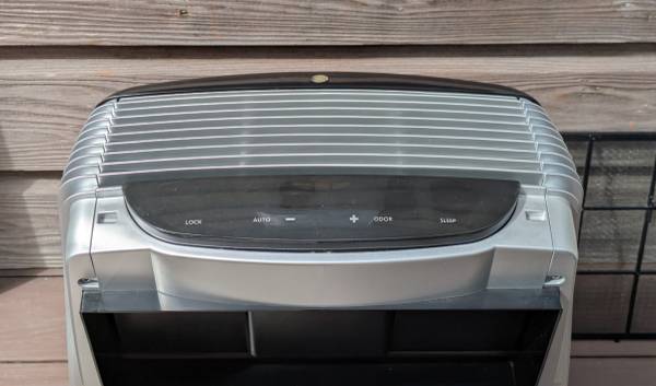 Lightly used. The exterior is in good condition with minor scuffs on the side. There's very minor ghosting on the top console from a few stickers that were in place there. The HEPA and charcoal filters are easy to replace and still good for several months. Manual included.