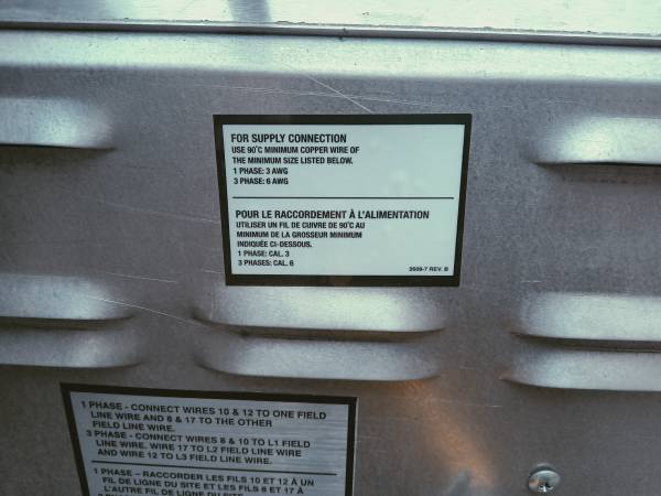 Two 208V, 1 phase electrical connections are required for operation.