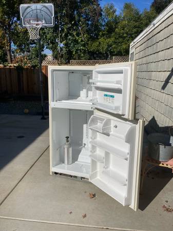 Whirlpool freezer/fridge combo both work great; appliance has been modified to also act as dual tap kegerator; the included tap parts and co2 tank alone are worth at least $100; great garage or backyard appliance; no more recycling cans and bottles after parties or the holidays plus you’ll save $ buying kegs. I’ll entertain reasonable offers