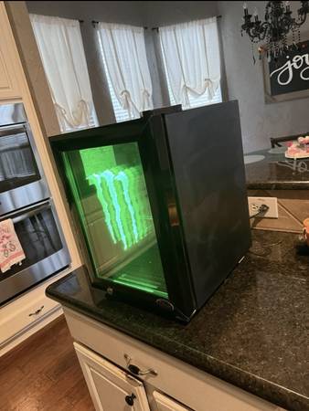 Selling a Monster Energy Beverage Countertop 2 Shelf Commercial Display Refrigerator. Fridge has a keyed door lock on the bottom corner. Includes two keys and owners manual. This GA-2 Style model integrates seamlessly into any countertop setup, making it an ideal choice for convenience stores, restaurants, garages, man caves and bars. Both it’s interior LED lighting and green “Monster” logo etched in glass door can be illuminated in different configurations using a rear switch panel. Height: 26-inches. Width: 17-inches. Depth: 20-inches. Pick up in San Ramon. Delivery available within the Easy Bay valley only if deposit is made up front. Thank you for your consideration.