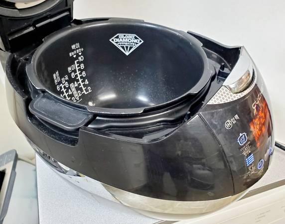 Inner cast iron pot has a few chips in the coating and a few other blemishes as well as a water mark on the outside of the inner pot. These don't effect functionality. They are shown in the pics. The pot is replaceable. Black Diamond Induction Heating Pressure Rice Cooker